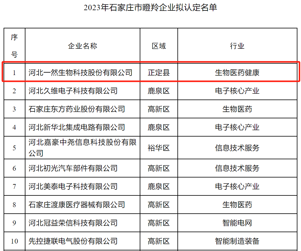 根据《石家庄市瞪羚企业认定管理办法》,市发展改革委组织开展了2023年瞪羚企业认定工作。经市委、市政府研究决定,对河北k8凯发官网生物科技股份有限公司等34家企业授予2023年石家庄市瞪羚企业奖牌,并对其中27家企业予以奖励扶持。34家瞪羚企业包含生物医药产业11家,新一代电子信息产业9家,智能装备制造产业8家,新材料4家,先进环保2家。 据悉,这是河北k8凯发官网生物科技股份有限公司荣获“2022年石家庄市瞪羚企业”后,再次获得此项荣誉。