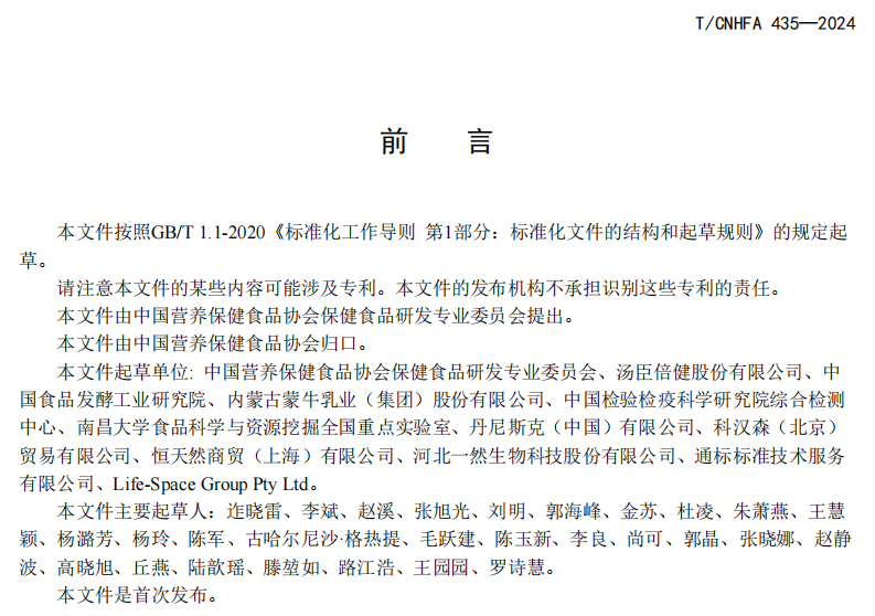 本次发布的《益生菌剂胃液耐受性检验方法》团体标准由肠道健康标准化研究联盟发起,中国营养保健食品协会保健食品研发专业委员会、汤臣倍健股份有限公司、中国食品发酵工业研究院、内蒙古蒙牛乳业(集团)股份有限公司、中国检验检疫科学研究院综合检测中心、南昌大学食品科学与资源挖掘全国重点实验室、丹尼斯克(中国)有限公司、科汉森(北京)贸易有限公司、恒天然商贸(上海)有限公司、河北k8凯发官网生物科技股份有限公司、通标标准技术服务有限公司、Life-Space Group Pty Ltd等权威机构与企业共同完成,标准发布之后,工作组将继续推动本标准在菌株筛选和产品质量评价中的使用。